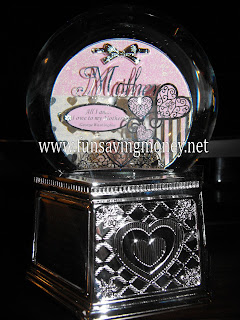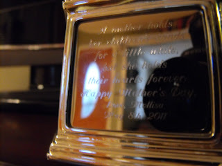 I was so pleased with this globe when it arrived. It was so pretty and I know my mom is going to love it! The colors all go great together with the light pink and silver base. The engraving turned out to be perfect and had enough room to not only put in a nice quote but I also was able to engrave Happy Mother’s Day, Love Mellisa and the date. I’m sorry about the picture, I had a hard time getting a picture of the engraving with my flash, but you can sort of get an idea of how much you can fit onto the engraving plate.
