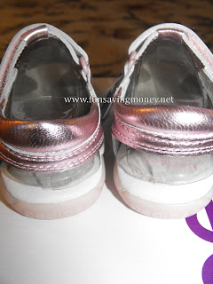 The two little pink flowers are precious and make these shoes really stand out with the sparkles on top. These would not only make great shoes for the spring and summer but they would also look great with a cute Easter dress or outfit.