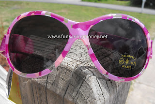 The lenses offer 100% UVA/UVB protection and they are pretty dark. Aubrey normally complains about the sun hurting her eyes but she never said one thing as she ran around the yard in her new sporty and stylish frames. The glasses have a side adjustable Velcro that grows with your child so they will be able to enjoy the glasses for a long time.