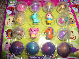 We were sent the new Squinkies Bubble Packs from Series 7, 8, and 9. Each of their series have different color bubbles and toys inside.